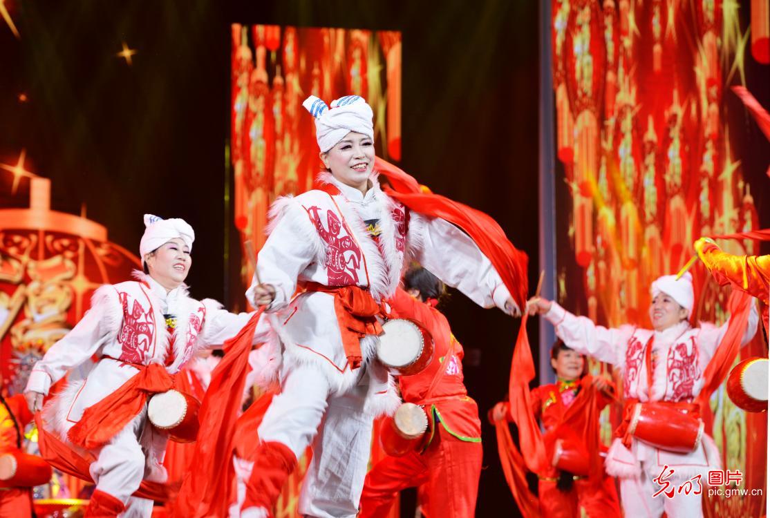 当日,内蒙古呼和浩特市举办"和谐社区幸福家园——2019社区春节文艺联欢晚会",晚会分为"盛世迎春""幸福和谐""民族团结""美好希望"四个篇章。(王正摄/光明图片)