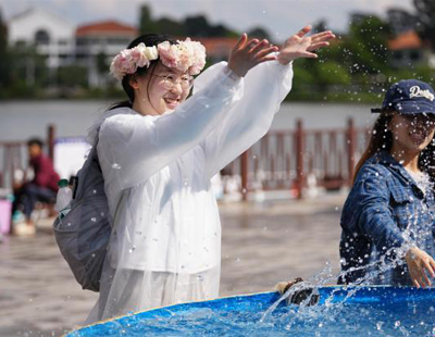 图为陈式太极拳表演,左起为陈娟、陈正雷、陈斌