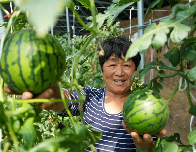 山东潍坊:小型西瓜成熟 瓜农收获忙