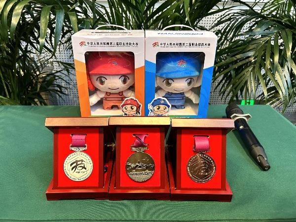 中国日报9月15日电(记者程思)15日上午,第二届全国技能大赛公布大赛奖牌设计方案。奖牌正面以中华人民共和国职业技能大赛会徽为核心,辅以“中华人民共和国第二届职业技能大赛“中英文和“中国·天津“字样,背景为鲁班锁的创意图案,对应中华人民共和国职业技能大赛的特质。奖牌背面以天津两个历史显著地标——解放桥与天津站的剪影为主元素,上方点缀海鸥,下方饰有水波纹,寓意河海涟漪,心心相融。