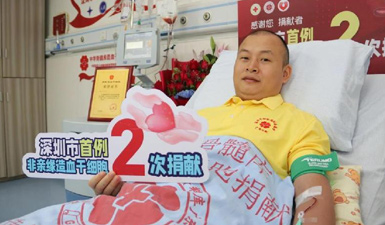 深圳市血液中心社会事务部蓝欲晓部长介绍道:“二次捐献造血干细胞的情况比较少。像刘先生这种二次捐献造血干细胞的行为,是生命至上和大爱深圳的很好诠释,体现出深圳市民的热血情怀。”