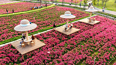 园区内数百亩金鱼草次第绽放、繁花似锦,勾勒出绚烂花海画卷,吸引众多市民游客前来打卡游玩,尽享烂漫景致。