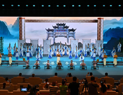 9月16日,在服贸会首钢园区,中国木偶艺术剧院的演员为现场观众表演经典木偶剧《梁祝》。