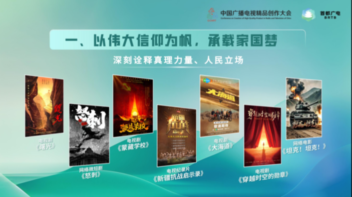 广播电视节目《认识你真好——习近平总书记的书单》《书山有路——习近平总书记的书单(第二季)》深刻诠释习近平文化思想的真理力量和人民立场,生动展现习近平文化思想的历史渊源和时代价值,充分彰显习近平文化思想的自信自强与开放包容;电视剧《大海道》聚焦各民族青年共同追梦的故事,彰显中华民族共同体理念;电视剧《穿越时空的勋章》选取隐蔽战线上的斗争故事,展现中国共产党人坚定崇高的理想信念。