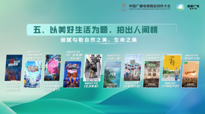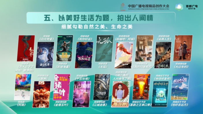 网络剧《我的阿勒泰》细腻勾勒边疆民族生活的风土人情,展现自然之美、生命之美,传达美好乐观的生活态度;电视剧《玫瑰的故事》聚焦不断成长、追求自我的女性群像,展现她们对生命价值的探索和人生理想的追求;电视剧《六姊妹》以“家”为载体,串联起何家六个姊妹的悲喜人生;网络微短剧《醒狮》以独特视角展现舞狮文化魅力,焕发非遗技艺的新时代活力;网络综艺节目《燃烧的月亮》深度记录年轻人真实牧养生活,见证劳作收获和积极向上的个体成长。