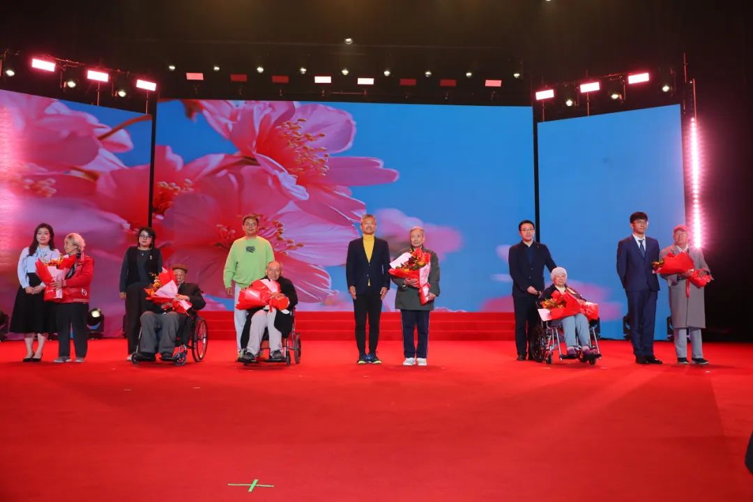在校学生代表和校友代表向学院老领导、老教授献花