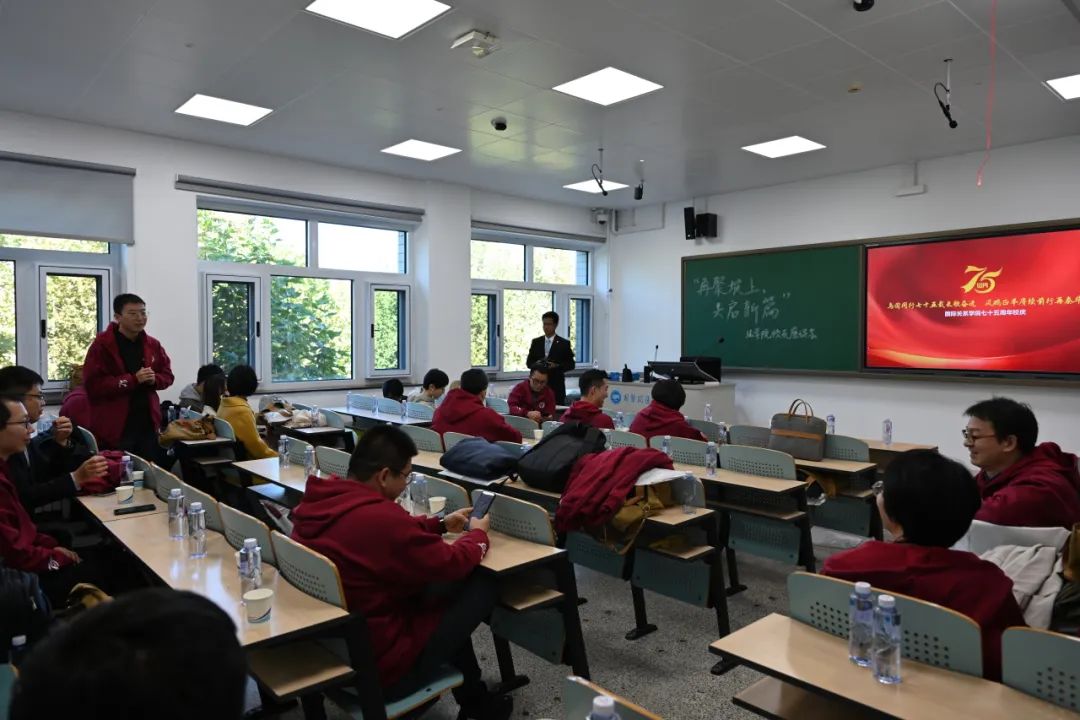 于学文分享了自己在改革开放初期,紧跟时代发展步伐,围绕国家大局推进吸引外资、促进中外文化艺术交流取得的成绩,以及坡上村四年学生生活对他治学和创业的点滴滋养。他表示,正是国关的教育和坡上村的生活,让他更加坚定地树立永远忠于党、忠于祖国、忠于人民的人生信仰。感谢国关的各位领导,感恩每一位老师和同学。祝愿国关延续昔日荣光,不断创造新的辉煌。