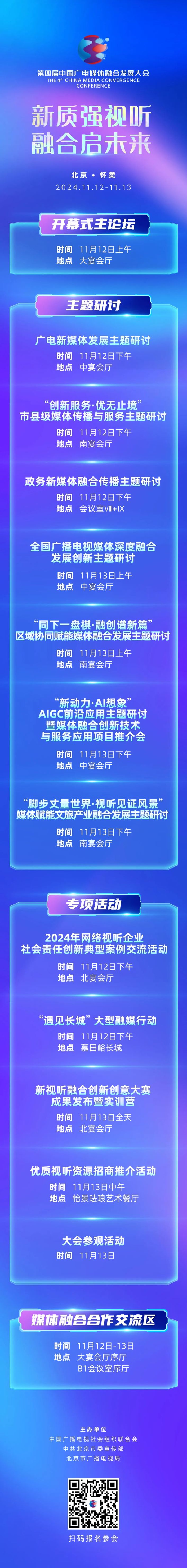 由中国广播电视社会组织联合会、中共北京市委宣传部、北京市广电局主办的第四届中国广电媒体融合发展大会将于11月12-13日举办。