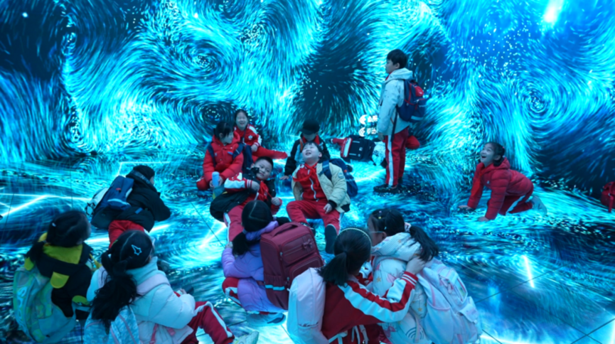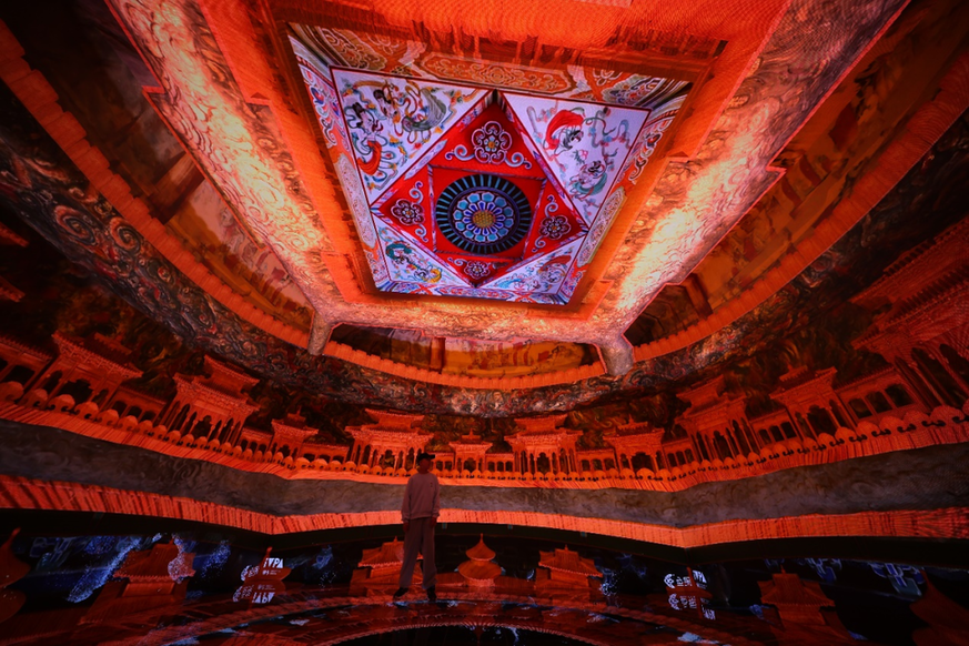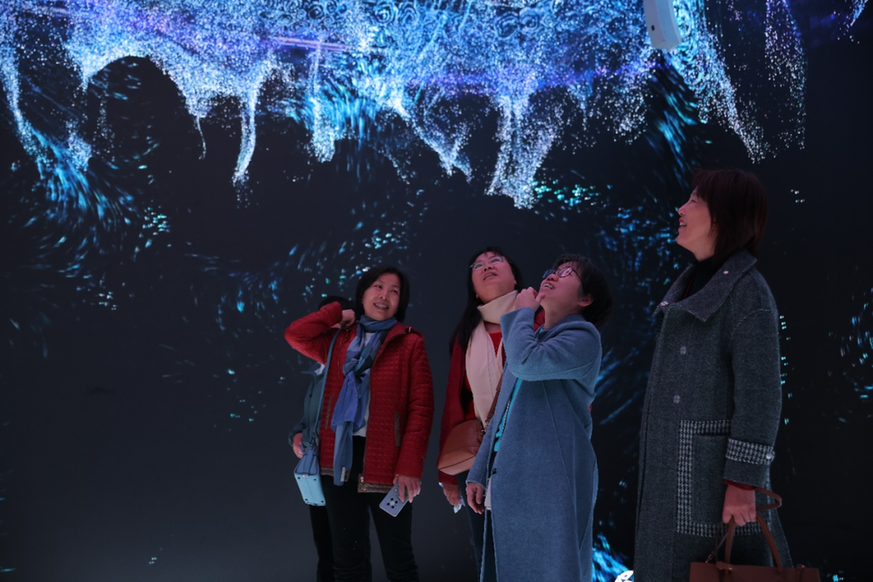 11月22日,北京大运河博物馆共享大厅地下一层人头攒动。一场由国家广电总局团委、北京市广电局、北京市文物局主办,首都博物馆协办的2024年“新视听体验空间” 公共服务主题活动,吸引了众多市民前来,免费打卡《“穹天玉宇”沉浸式中国藻井数字艺术体验空间》《中纹宇宙:多觉沉浸超高清数字艺术展》《宇宙花园》三场展览,感受超高清视听数字艺术带来的震撼体验。