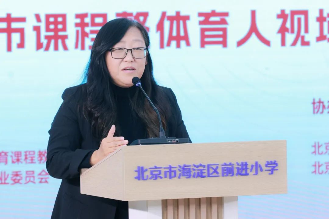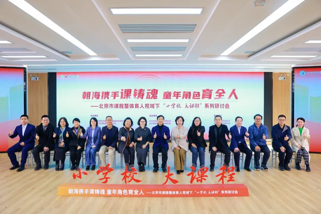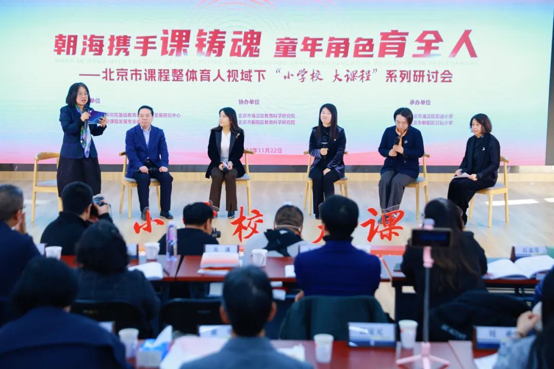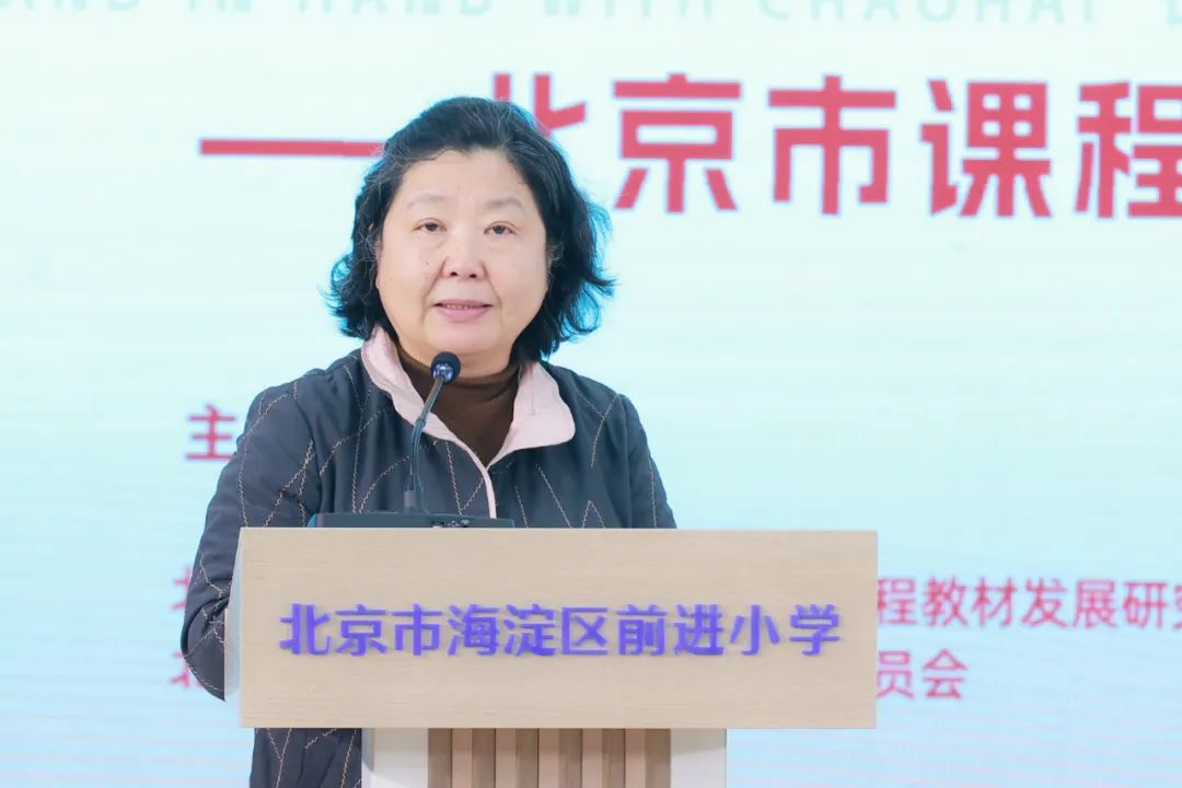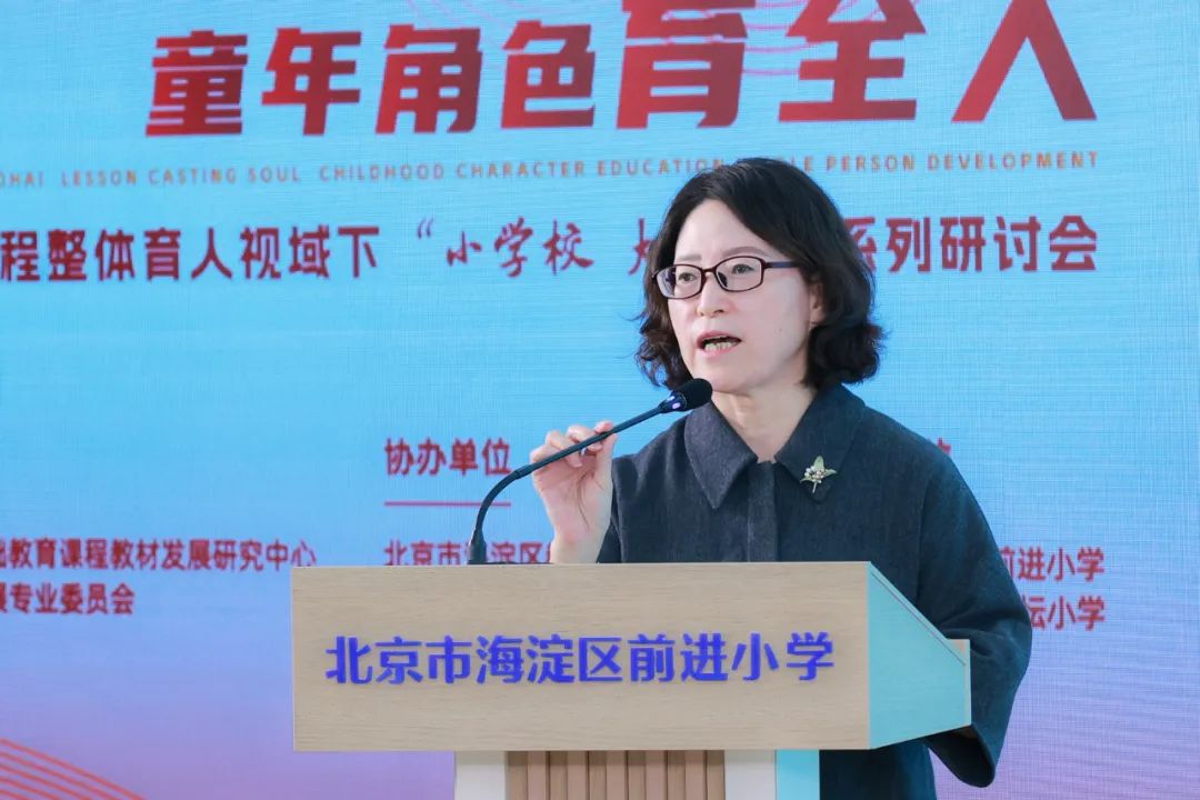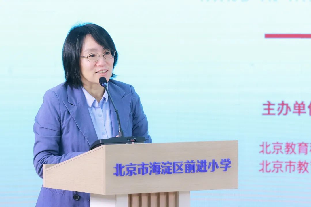 2024 年11 月22 日,由北京教育科学研究院基础教育课程教材发展研究中心和北京市教育学会课程发展专业委员会联合主办,北京市海淀区教育科学研究院、北京市朝阳区教育科学研究院协办,北京市海淀区前进小学和北京市朝阳区日坛小学承办的“朝海携手课铸魂童年角色育全人”——北京市课程整体育人视域下“小学校大课程”系列研讨会在海淀区前进小学主会场隆重召开。此次研讨会旨在深入探讨课程整体育人理念,展示小学校在大课程建设方面的创新成果。会议分为师生风采展示和现场深度交流两个环节,北京教育科学研究院课程中心课程主任江峰主持会议。