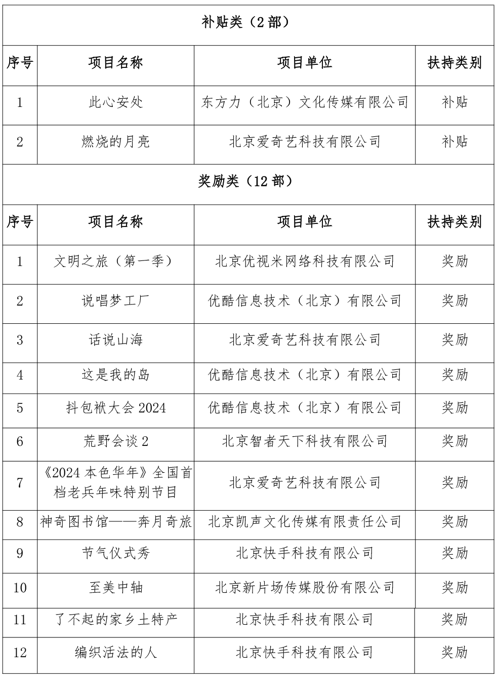 为充分听取社会各界意见,确保北京广播电视网络视听发展基金评选公平公正,根据《北京广播电视网络视听发展基金章程》,现将北京广播电视网络视听发展基金2024年度拟资助项目(第二批)名单予以公示。如对拟资助项目有异议,请以书面方式向北京广播电视网络视听发展基金管理办公室反映,并提交必要的书面证据材料,以便核实查证,书面材料需提供本人真实姓名、工作单位、联系电话等有效联系方式,基金管理办公室将严格保密。凡匿名、冒名或超出期限提出异议的不予受理。