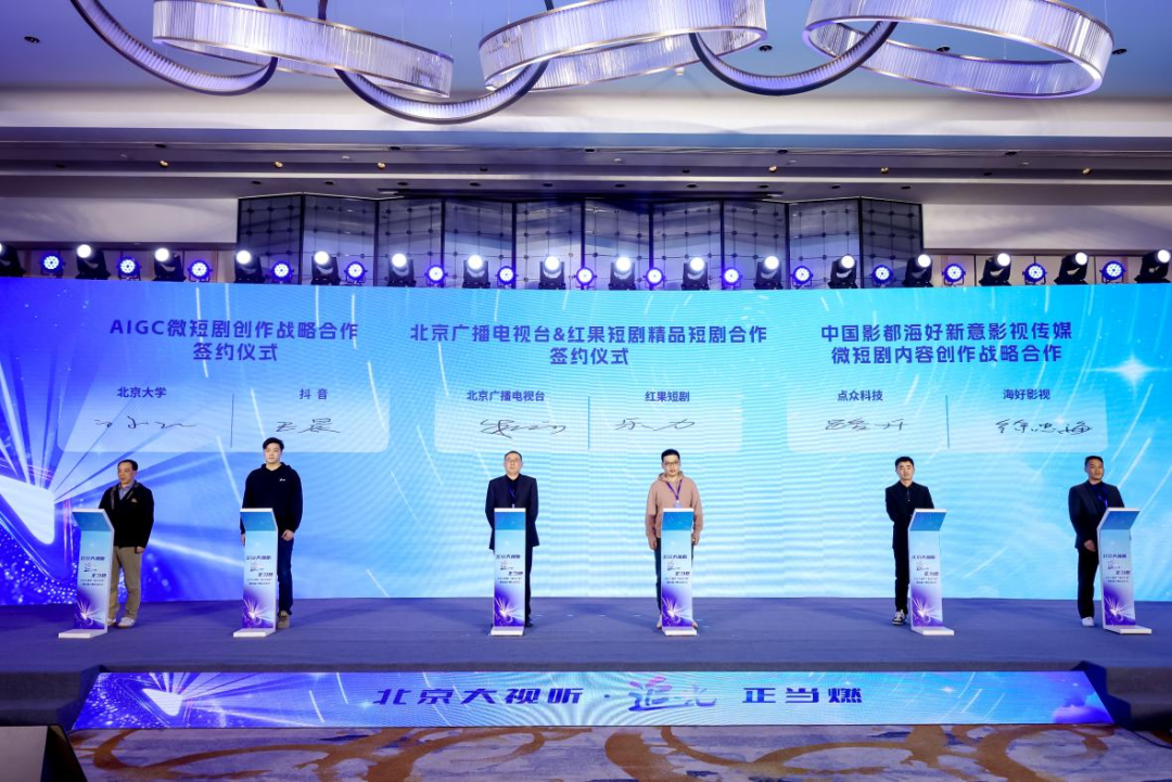 12月23日,在北京市广电局的支持和指导下,西城区委宣传部与快手科技、石景山区委宣传部与点众科技、北京广播电视台与红果短剧、点众科技与海好影视等在北京大视听“追光计划”微短剧大赛启动仪式上进行签约,多方将围绕微短剧创作与推广强强携手,整合优质资源,探索精品微短剧的新路径,共同打造制作精良、内容优质、满足用户多元观剧需求的微短剧作品。