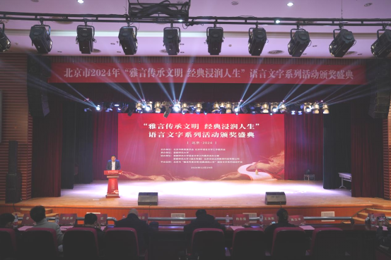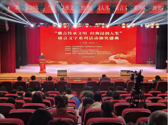 现场播放了“北京市2024年‘雅言传承文明经典浸润人生’语言文字系列活动的回顾短片,公布了活动获奖名单,并为获奖代表颁发了荣誉证书。