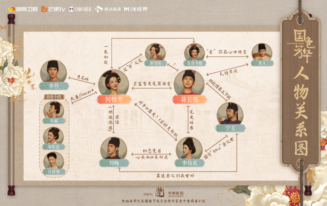 《国色芳华》是一部全景式展现盛唐长安民生风貌的剧集。该剧以花为媒介,巧妙串联起一系列曲折多变的“创业”故事。《国色芳华》尚未播出便已引起广泛关注,吸引了全网超过600万观众的热烈期盼。该剧提前点燃了春节档剧集市场的热度,成为备受瞩目的“文化年货”。