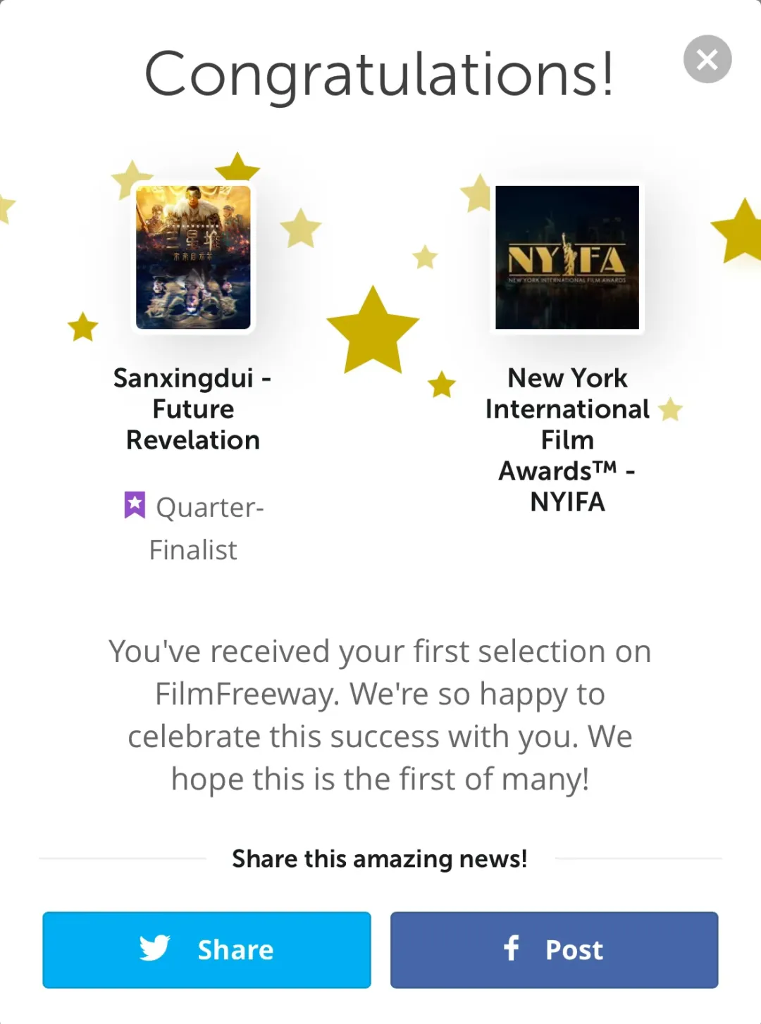 《三星堆:未来启示录》第一季全端传播总量突破1.6亿次,抖音话题播放量达1.35亿次,跻身抖音短剧最热榜 前五,并稳居科幻类短剧播放量榜首。该剧不仅入选“跟着微短剧去旅行”创作计划和国家广电总局《2024网络视听精品节目合辑》,还在国际电影节上屡获殊荣,成功入围纽约国际电影节、法国戛纳世界电影节和美国洛杉矶国际电影节,展现了中国科幻影视的创新实力。