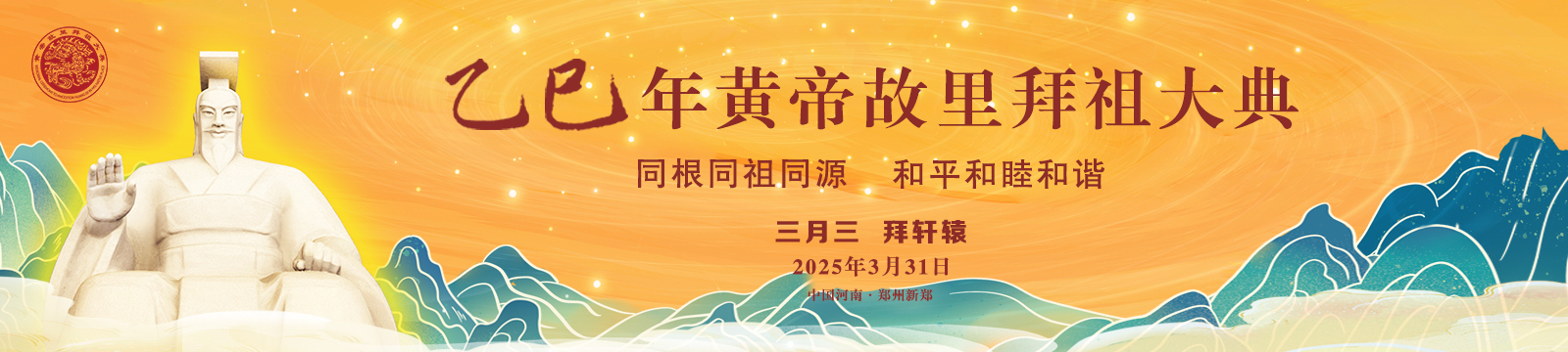 乙巳年黄帝故里拜祖大典将于2025年3月31日,农历三月初三,星期一,在河南省郑州市新郑黄帝故里举办。
