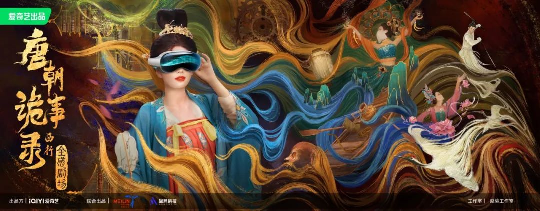 《唐朝诡事录·西行》国潮沉浸剧场是爱奇艺裂境工作室全自研打造的系列全感剧场项目。它以“实景演绎”+“全感VR”体验为特色,旨在 以数字技术赋能影视IP开发,拓宽文旅消费新空间。项目借助虚拟现实技术、全感装置、影视级置景将历史场景数字化重现,还原真实的大唐风光,将古都长安的历史文化更加生动地呈现给观众。游客可以通过虚拟形象前往繁华的长安夜市,与剧中角色苏无名、卢凌风一同“夜探水镇、侦破奇案”。目前已经在 北京市石景山游乐园、西安大唐不夜城、深圳欢乐港湾,落地运营,迎来打卡热潮。
