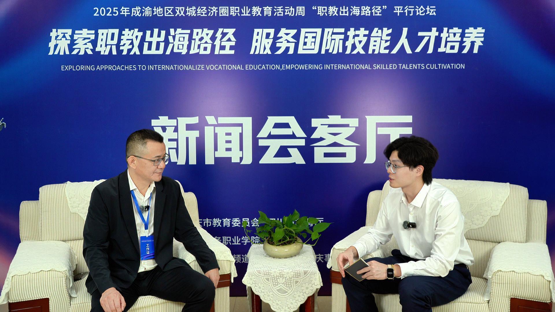 5月11日,2025年成渝地区双城经济圈职业教育活动周启动仪式在重庆举行。同时举行的“职教出海路径”平行论坛分会场,光明网重庆频道邀请到重庆商务职业学院副校长贾小波等多位职业院校负责人做客新闻会客厅,围绕职业教育出海的前沿话题展开深入研讨,分享取得的成绩与经验,探寻发展的新思路新方向。