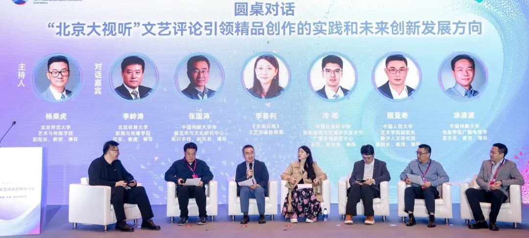 在圆桌对谈环节,专委会副主任冷凇、张国涛、李岭涛、杨乘虎、顾亚奇、涂凌波、李春利,七位专家围绕“‘北京大视听’文艺评论引领精品创作的实践与未来”展开深度探讨。与会者一致认为,新时代文艺评论需打破学科壁垒,融合技术赋能与人文关怀,以“破圈”思维推动京华文化IP的全球化传播,构建大平台,讴歌新时代,为文化交流注入首都视听新声。