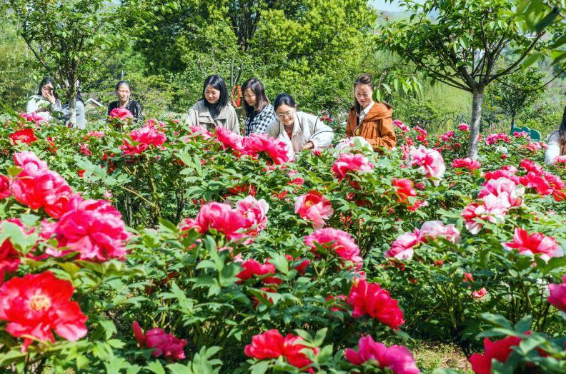 江苏省南京市溧水区洪蓝街道山南村牡丹园内各色牡丹竞相绽放,美不胜收的乡村春色,吸引游客前来踏青赏花。