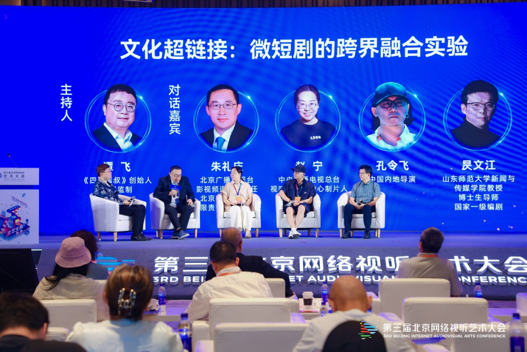 “文化超链接:微短剧的跨界融合实验”圆桌对话中,北京广播电视台影视频道中心主任、北京紫禁城影业有限责任公司董事长朱礼庆分享了文化IP的转化之道,在叙事上要规避宏宏大叙事和全景铺陈,要寻找小切口内容来表达传统文化的微言大义;中央广播电视总台视听新媒体中心制片人赵宁深入解析了主流媒体融合微短剧与文化创新的实践经验;导演孔令飞以《重回永乐大典》为例阐述了传统文化现代表达的心得,要带着对传统文化的敬畏心去创作,又要挖掘年轻的兴趣点;山东师范大学新闻与传媒学院教授,博士生导师,国家一级编剧昃文江则表达了对微短剧创新的期许:微和短是它的形式,精和深才应该是它的灵魂,希望微短剧能够成为一种文化常态。这场对话不仅勾勒出微短剧作为文化新载体的无限可能,更为行业提供了“传统与现代”“本土与国际”的融合新思路。