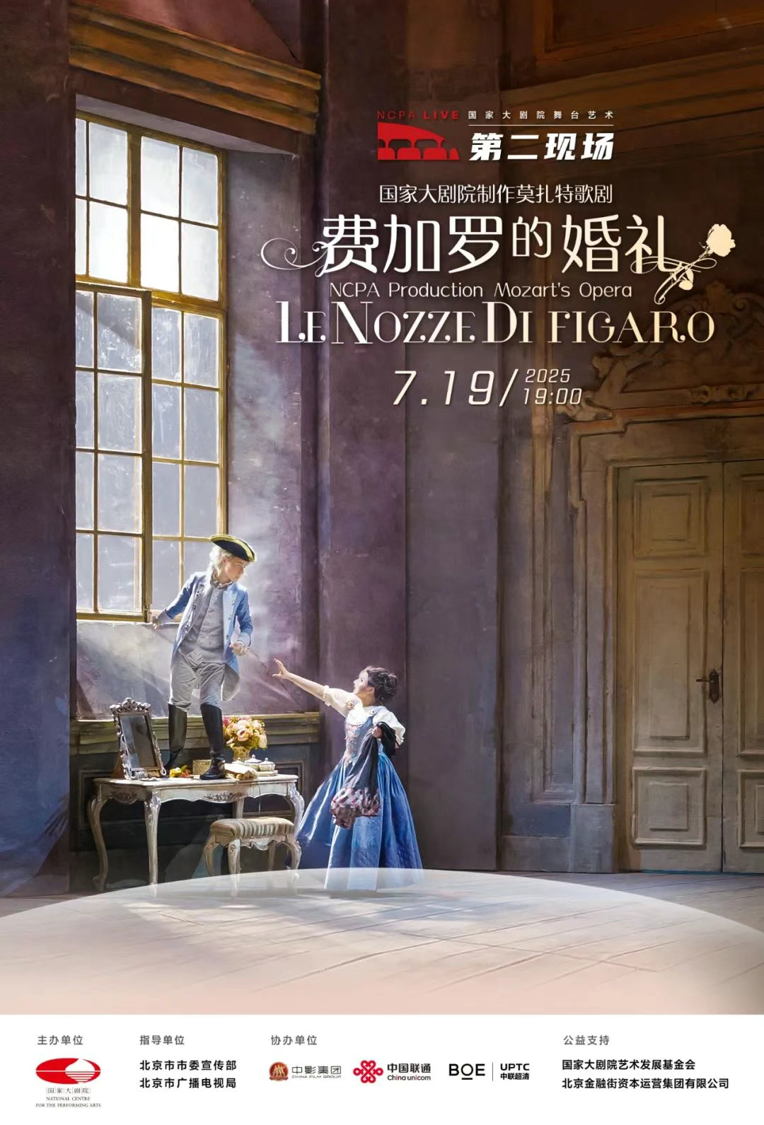 7月19日19:00,由北京市委宣传部、北京市广电局指导,国家大剧院主办的《费加罗的婚礼》超高清“第二现场”直播活动即将开启。继今年4月19日话剧《林则徐》直播取得空前成功后,此次活动将 首次把世界经典歌剧的现场实况,同步呈现在全国影院和剧院的银幕上。凭借国际一流的制作水准,活动旨在推动高雅艺术的全民共享。届时,莫扎特的不朽旋律将跨越时空,在神州大地30多个城市同时唱响,将歌剧“第一现场”的原貌实时投射到全国各地的百余家影院和剧院舞台。