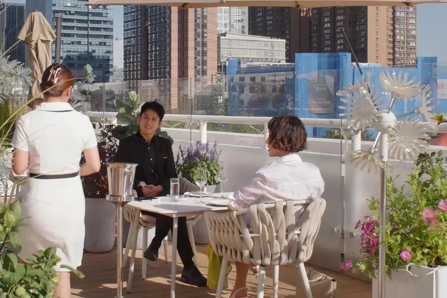 在北京取景的电视剧《装腔启示录》中,许子诠和客户在CBD附近的露台餐厅用餐,用专业又得体的姿态和客户谈合作,露台后林立的高层写字楼将职场的精致感拉满。
