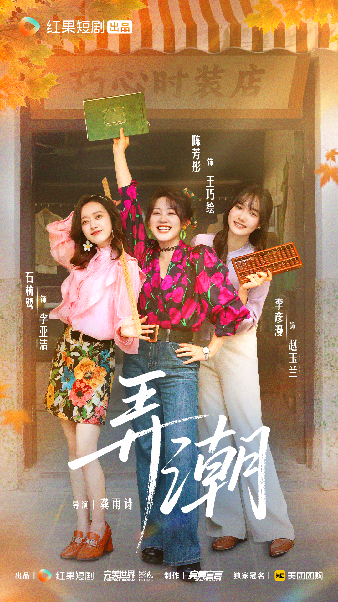 《弄潮》把镜头聚焦于从大山深处走出的王巧绘(陈芳彤饰),面对生活里的困境,她依靠精湛的裁缝技艺,以及母亲王惠香孤注一掷的支持,挣脱命运的枷锁,与同样历经生活磨难的发小赵玉兰(李彦漫饰)重新并肩,并与成衣厂厂长之女李亚洁(石杭鹭饰)从误解走向同盟。 三位背景迥异的女性,在人生的低谷相遇,一句“一起走”的约定,开启了她们从零起步、共同创业的热血征程。