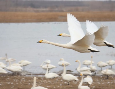 河南三门峡:白天鹅“回家”过冬