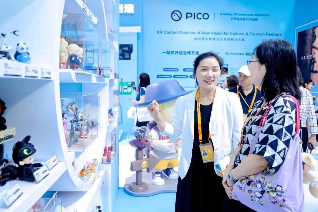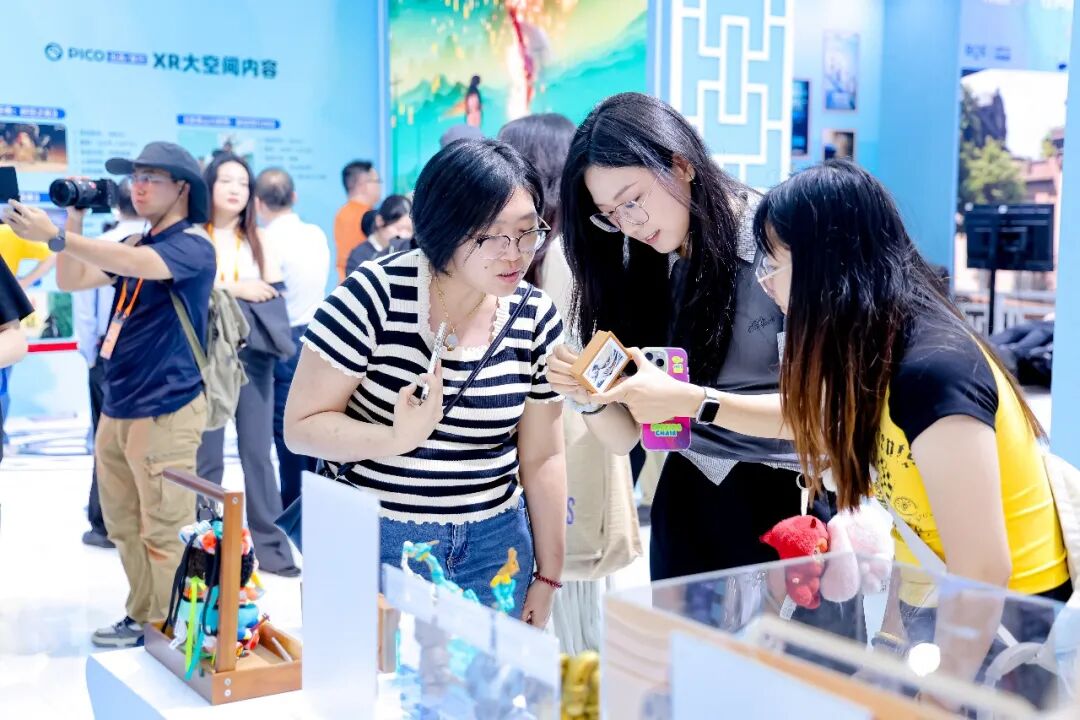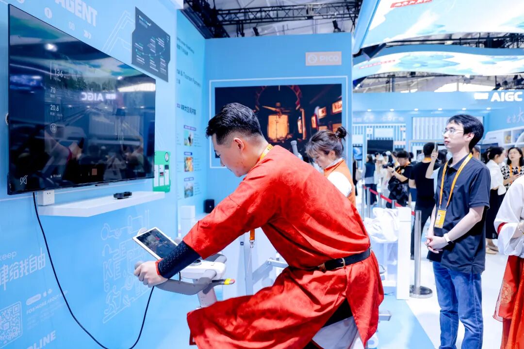 文商旅体融合板块:展示了科技赋能开启的一系列新消费场景。想体验“运动+科技”的快乐? 这个板块集合了PICO、KEEP 、52Toys等行业龙头,带来文商旅体融合的 “新玩法”。在KEEP展区,跟着屏幕里的AI教练运动,仿佛置身专业健身房;PICO则带来XR沉浸交互体验,首发动漫联名游戏 《浪浪山小妖怪:妖你同行XR》,戴上设备就能“走进”浪浪山,与小妖怪们互动。