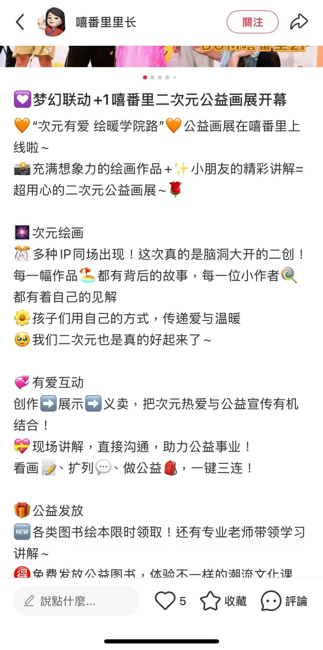 今年动画周成为全民参与的“破次元大派对”,充满想象力的绘画作品+小朋友的精彩讲解=超用心的二次元公益,多种IP同场出现!每一幅作品都有背后的故事,每一位小作者都有着自己的见解。孩子们用自己的方式,传递爱与温暖,我们二次元也是真的好起来了~ 精彩活动从早到晚不停歇,动画周期间每日精彩活动不断,包括Coser巡游、宅舞比赛、嘉宾签售、主题音乐会等,持续点燃现场氛围,让不同年龄层的观众都能找到属于自己的动画快乐。