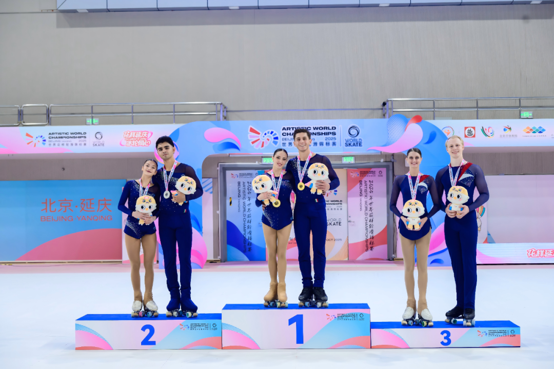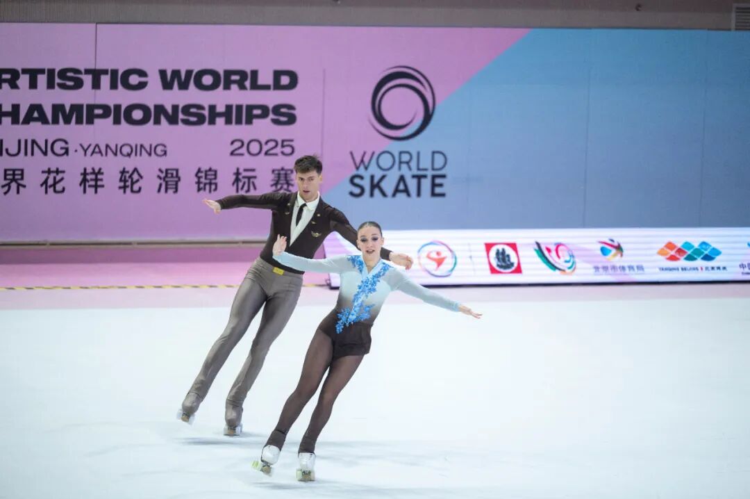 10月25日,2025年世界花样轮滑锦标赛在北京延庆区全民健身中心综合馆进入第9个比赛日,赛程过半。当日,青年组与成年组双排轮双人滑长节目比赛激烈上演,16名运动员组成的8支参赛队悉数登场,意大利斩获两金。