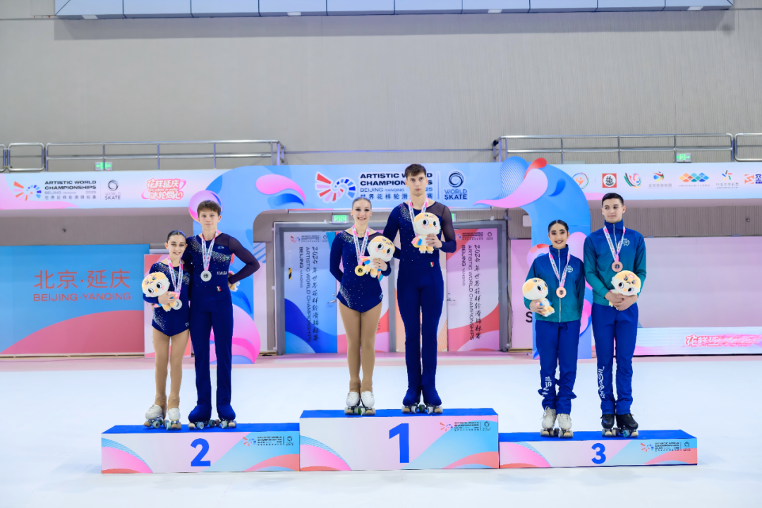 随着最后一组选手完成滑行,两枚金牌归属正式揭晓。来自意大利的ALESSIO COCCI(阿莱西奥·科奇)、ALICE POZZOBON(爱丽丝·波佐邦)获得青年组双排轮双人滑场长节目比赛冠军,来自意大利的TOMMASO CORTINI(托马斯·科尔蒂尼)、MICOL MILLIS(科尔·米利斯)获得成年组双排轮双人滑长节目比赛冠军。