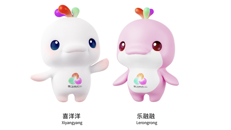 十五运会和残特奥会吉祥物以国家一级保护野生动物、“海上国宝”中华白海豚为原型。两个吉祥物可爱萌宠,分别取名喜洋洋、乐融融,寓意喜气洋洋、其乐融融、团圆和美。