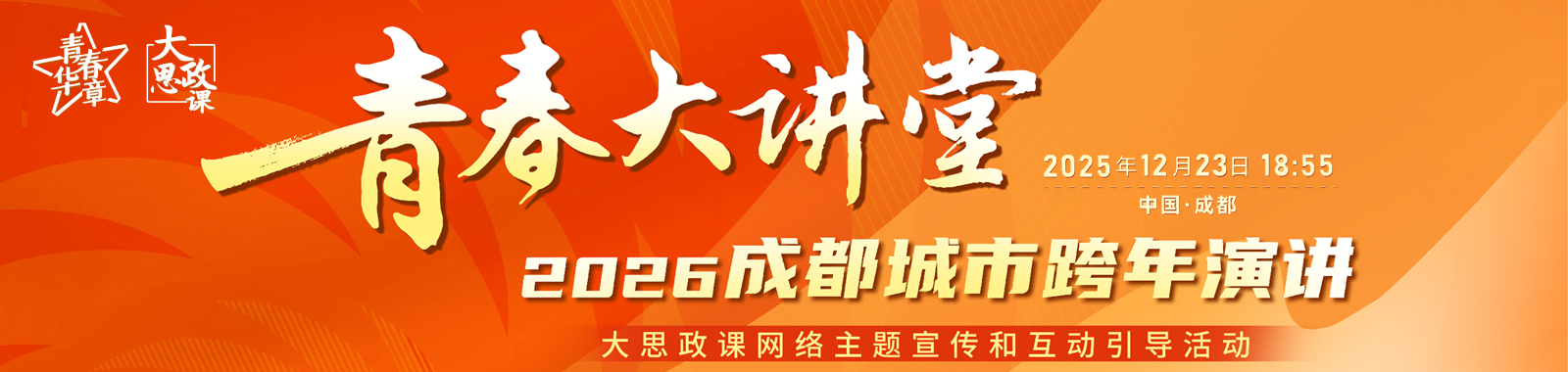 奋楫再出发,书写新篇章!12月23日,“青春大讲堂·2026成都城市跨年演讲”大思政课网络主题宣传和互动引导活动在成都正式开讲。活动围绕“致时代征程”“致成都‘城’就”“致青春的你”三大篇章,串联起国防航空、深蓝梦想、创新创业、赛事拼搏、志愿服务、文化创意、温暖微光等多个维度的成都故事,带领青少年回望2025、展望2026,继续以扬蹄奋跃之姿,与成都一起砥砺前行,向着中国式现代化的新征程,继续驰骋!