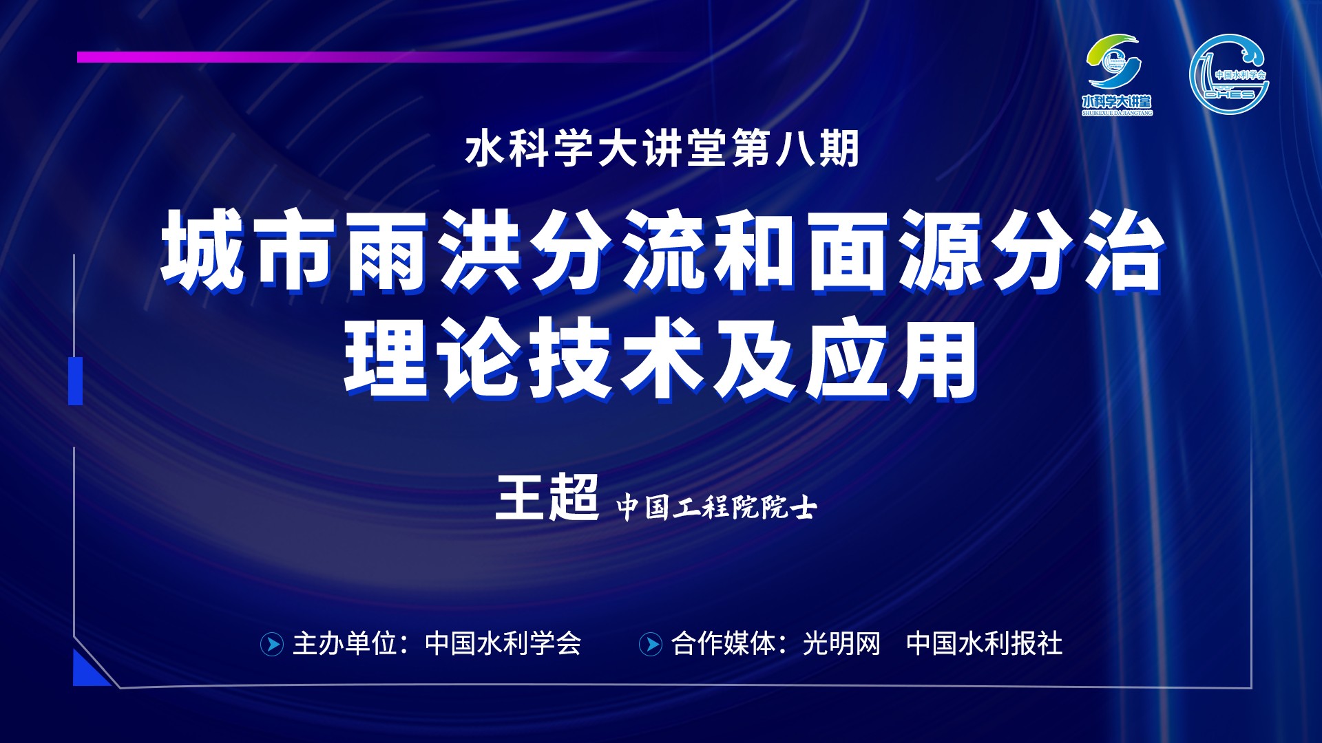 “水科学大讲堂”是由中国水利学会中国水利报社联合策划推出的直播品牌活动,旨在进一步增强水利系统干部职工及全社会科学爱好者的水科学意识。在这里我们将邀请院士、知名专家、科普大V围绕水利前沿、最新研究成果、水利未来科技创新发展趋势畅所欲言!本期内容,由中国工程院院士王超以《城市雨洪分流和面源分治理论技术及应用》为题作专题报告。