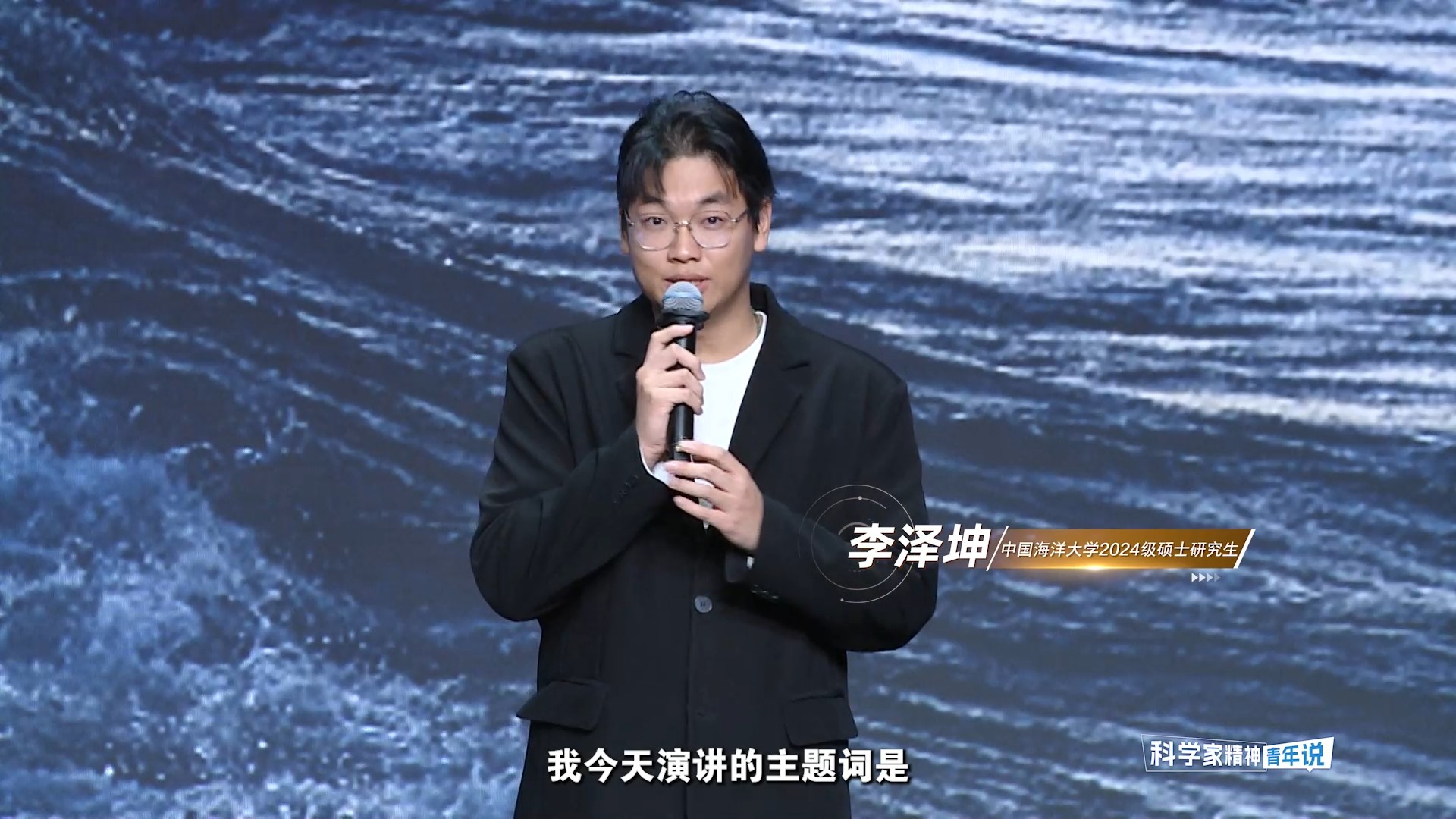 科学大师宣传工程“科学家精神青年说”活动近日在清华大学举行,在中国海洋大学原创话剧《文圣常》中,学生李泽坤饰演郭铖——文先生身边默默陪伴二十余年的秘书。