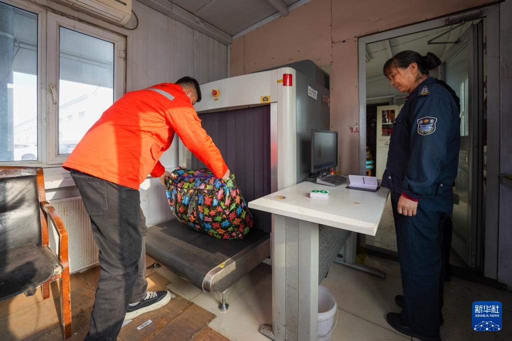 1月31日,在新疆乌鲁木齐中铁特货乌鲁木齐分公司三坪物流基地,工作人员对待托运车辆内的行李进行安检。
