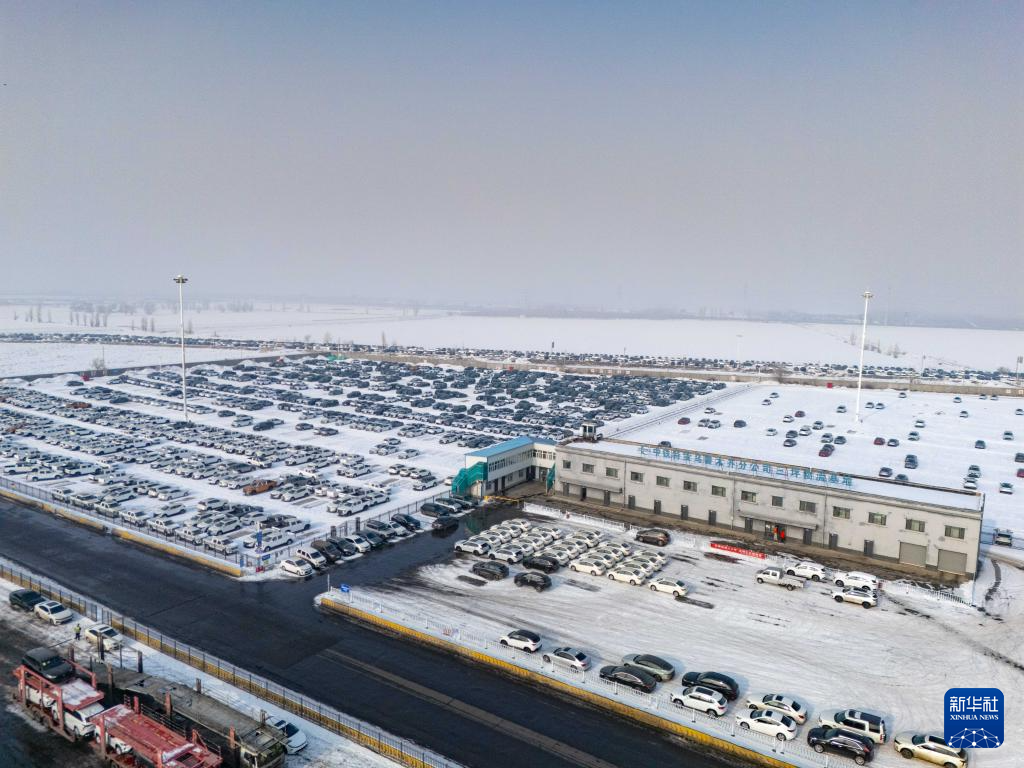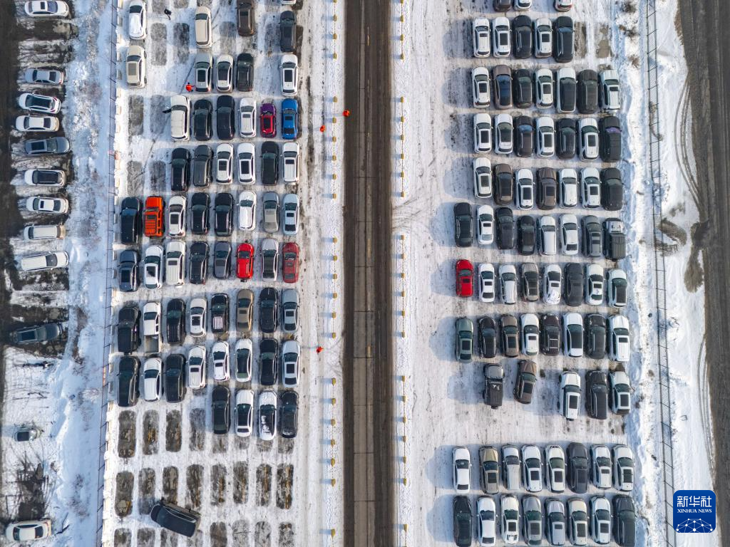 这是1月31日在新疆乌鲁木齐拍摄的中铁特货乌鲁木齐分公司三坪物流基地国铁汽车托运交车区。