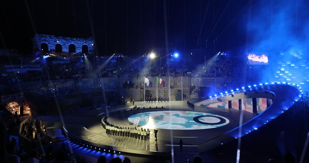 新华社米兰2月22日电(记者任耀庭、马邦杰)22日晚,意大利维罗纳竞技场华灯璀璨,2026年米兰-科尔蒂纳冬奥会的终曲在这里奏响。
