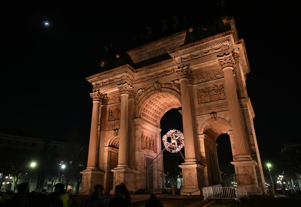 这是2月22日在意大利米兰拍摄的主火炬。新华社记者 武巍摄