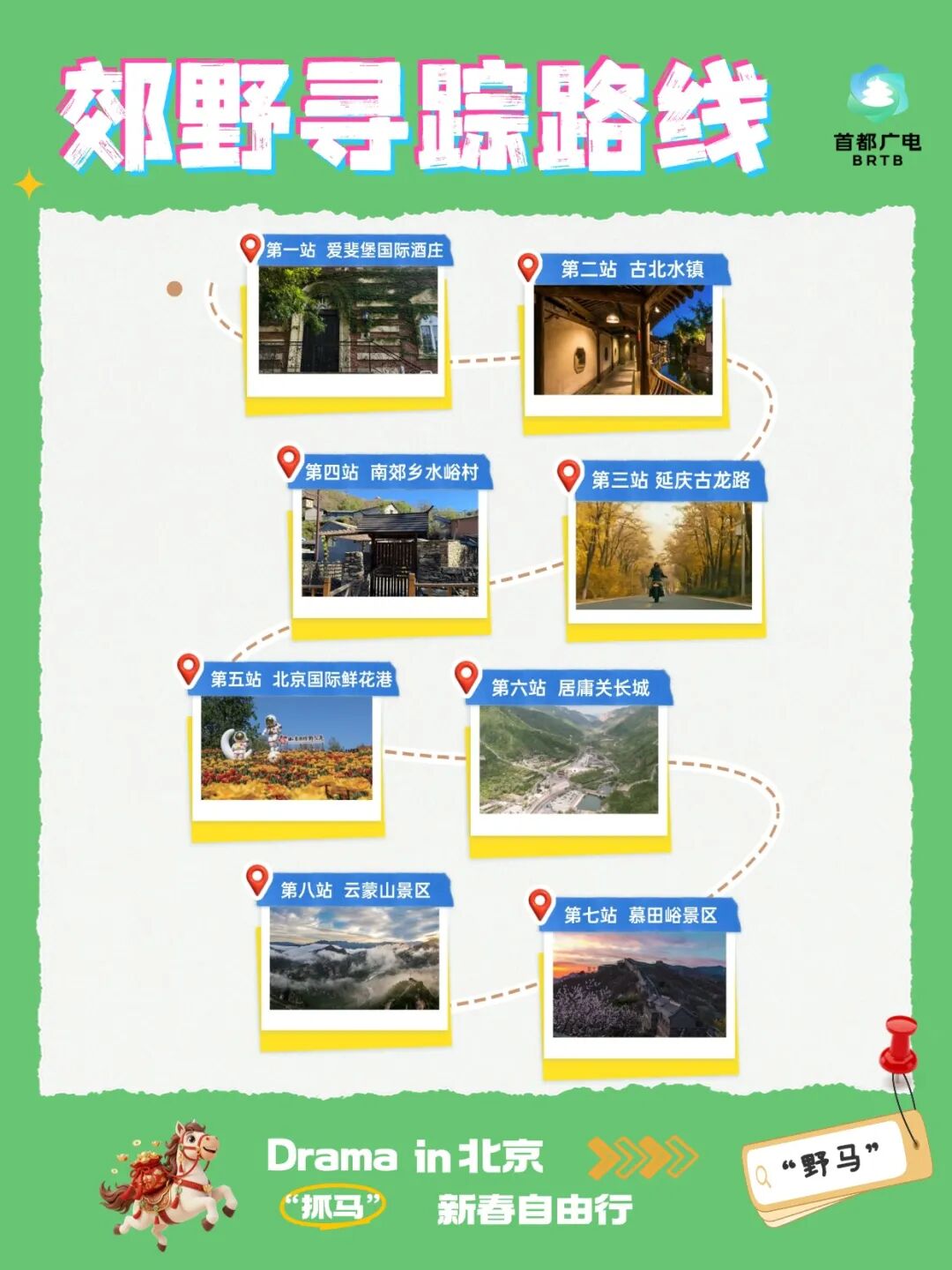 马年新春,北京市广电局推出跟着“北京大视听”游北京系列12条打卡路线。Drama(抓“马”) in 北京,新春自由行!本期我们抓的是“野马”。