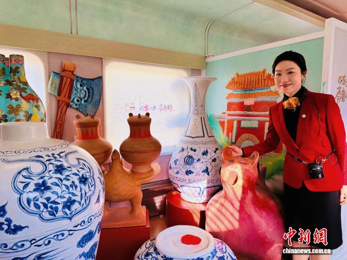 “好客山东·齐鲁1号”文物研学主题旅游列车设有瓷、陶、画像石等主题车厢。赵晓 摄
