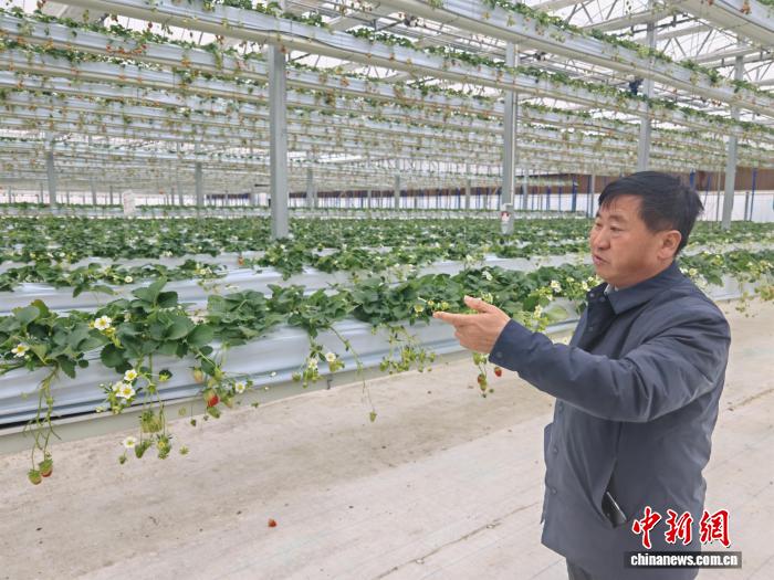 董兆付介绍草莓品种。谷华 摄