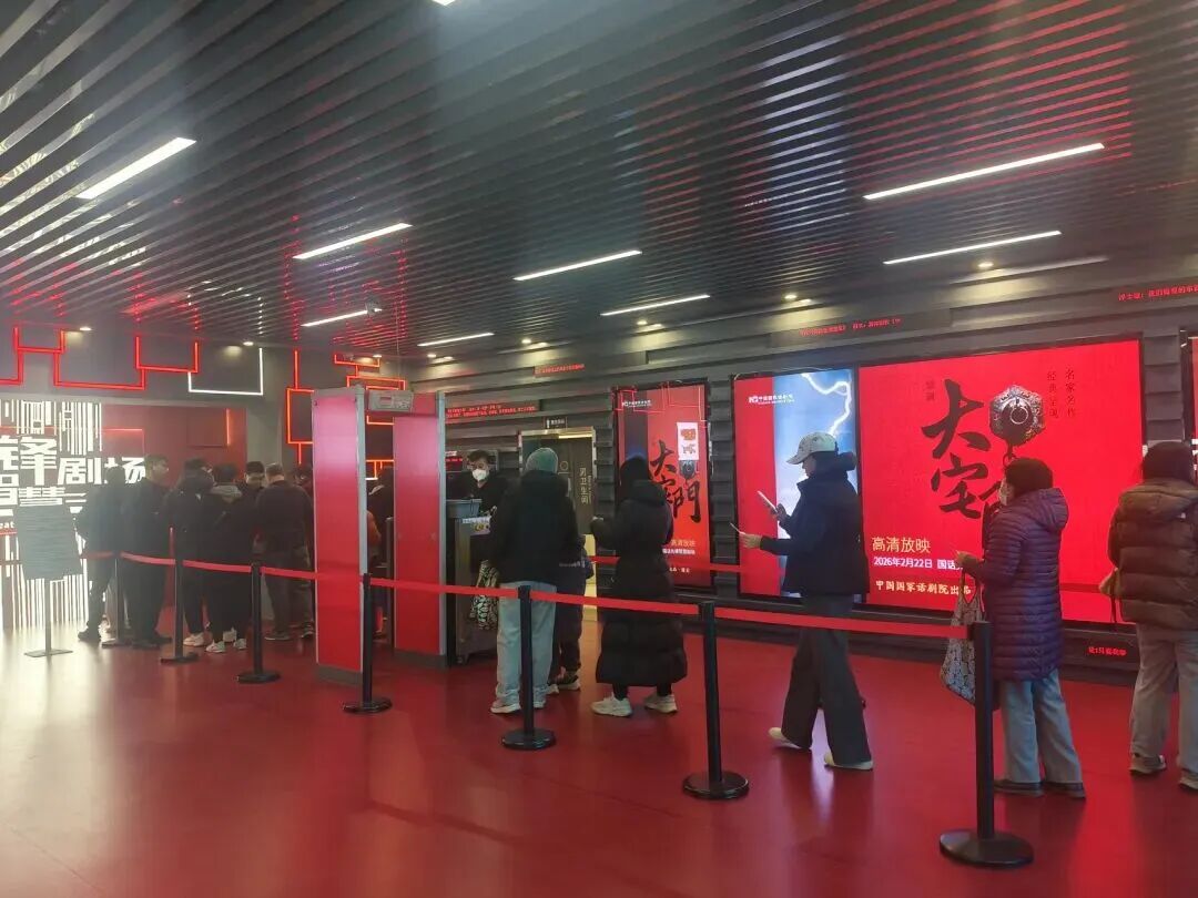 放映前,剧场前厅聚满热情的观众,大家手持票根打卡留念,工作人员细致引导、贴心服务,让每一位观众在温馨的氛围中满怀期待。“早就想重温这部经典,趁春节放映带家人一起来看!”一位话剧迷激动地表示,“票价惠民,品质却不打折,这才是真正的文化福利!”放映现场,不同年龄的观众齐聚一堂,在创新视听技术的呈现中感受舞台艺术的独特魅力。