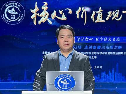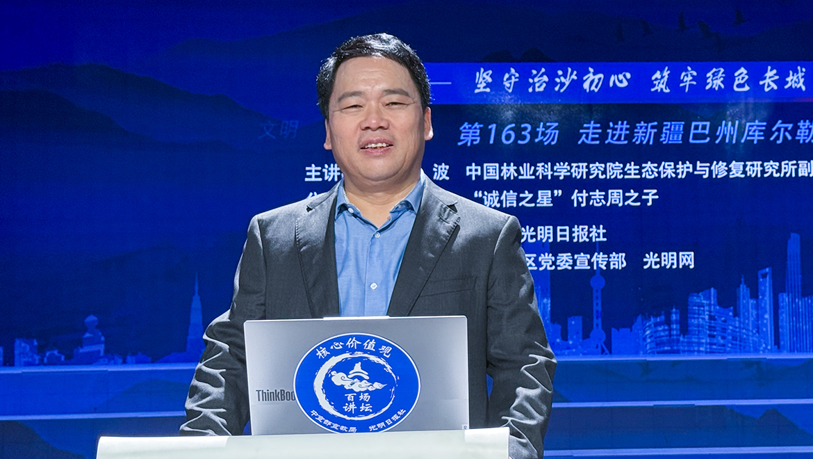 “核心价值观百场讲坛”第163场,中国林业科学研究院生态保护与修复研究所副所长、荒漠化研究所所长吴波作题为《坚守治沙初心 筑牢绿色长城》的演讲。