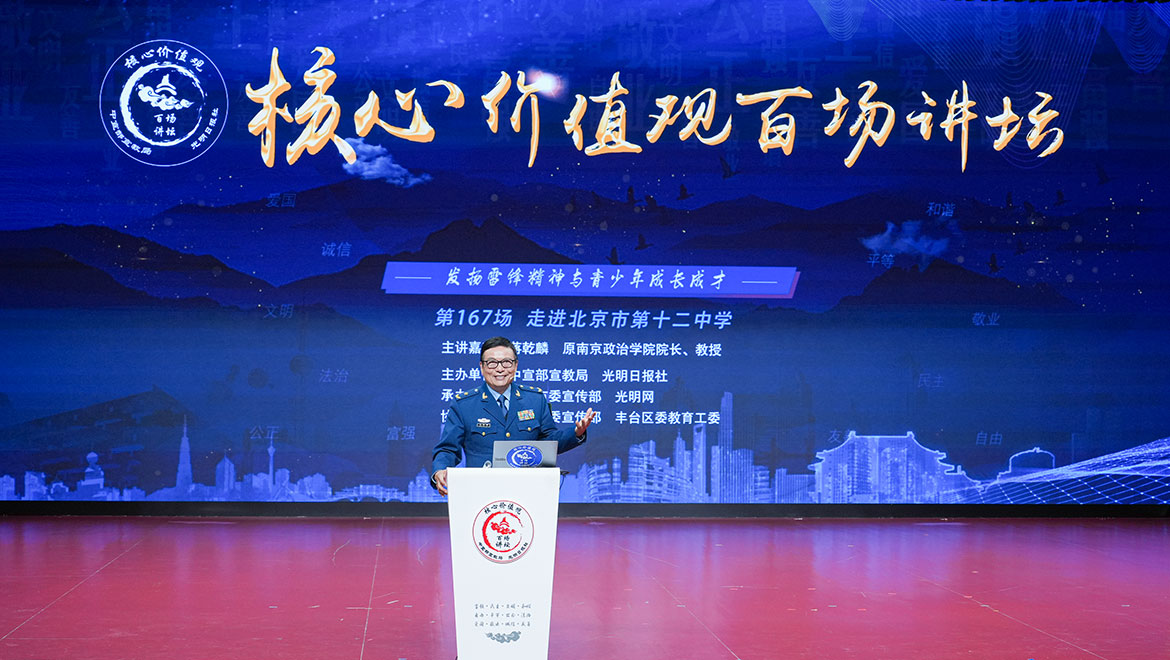 “核心价值观百场讲坛”第167场活动3月20日在北京市第十二中学举行,主题为“发扬雷锋精神与青少年成长成才”,原南京政治学院院长蒋乾麟作了宣讲报告。