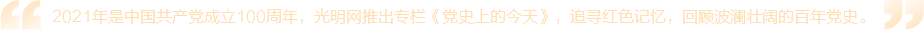 2021年是中国共产党成立100周年,即日起,光明网推出专栏“党史上的今天”,追寻红色记忆,回顾波澜壮阔的百年党史。