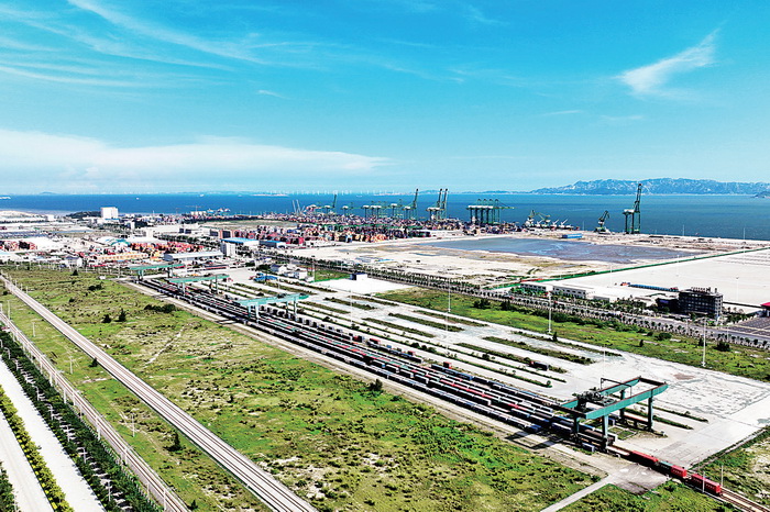 福州港江阴港区海铁联运一体化运营开通。福建港口集团供图