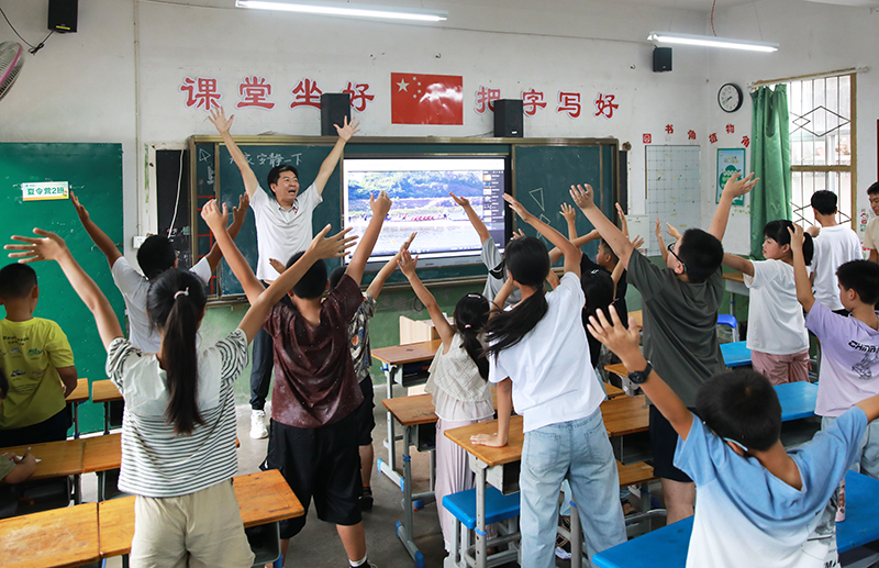 罗坊乡这片热土,被绿水青山环绕,风景如诗如画。和孩子们在一起时我了解到,有的孩子几乎没去过县城,航空对于他们是一件遥远的事。我想,我们实践队带来的不仅仅是科普知识,更是一束光。我们渴望用这短短的一课,拨开层层迷雾,将那片广袤无垠的蓝天,展现到孩子们的眼前。希望我们短短的科普课程能在他们心中种下航空的种子,在未来生根、发芽、悄然生长。(西北工业大学学生蓝色学堂航空科普志愿者服务队队员、“护苗学堂”志愿者 朱墨严)